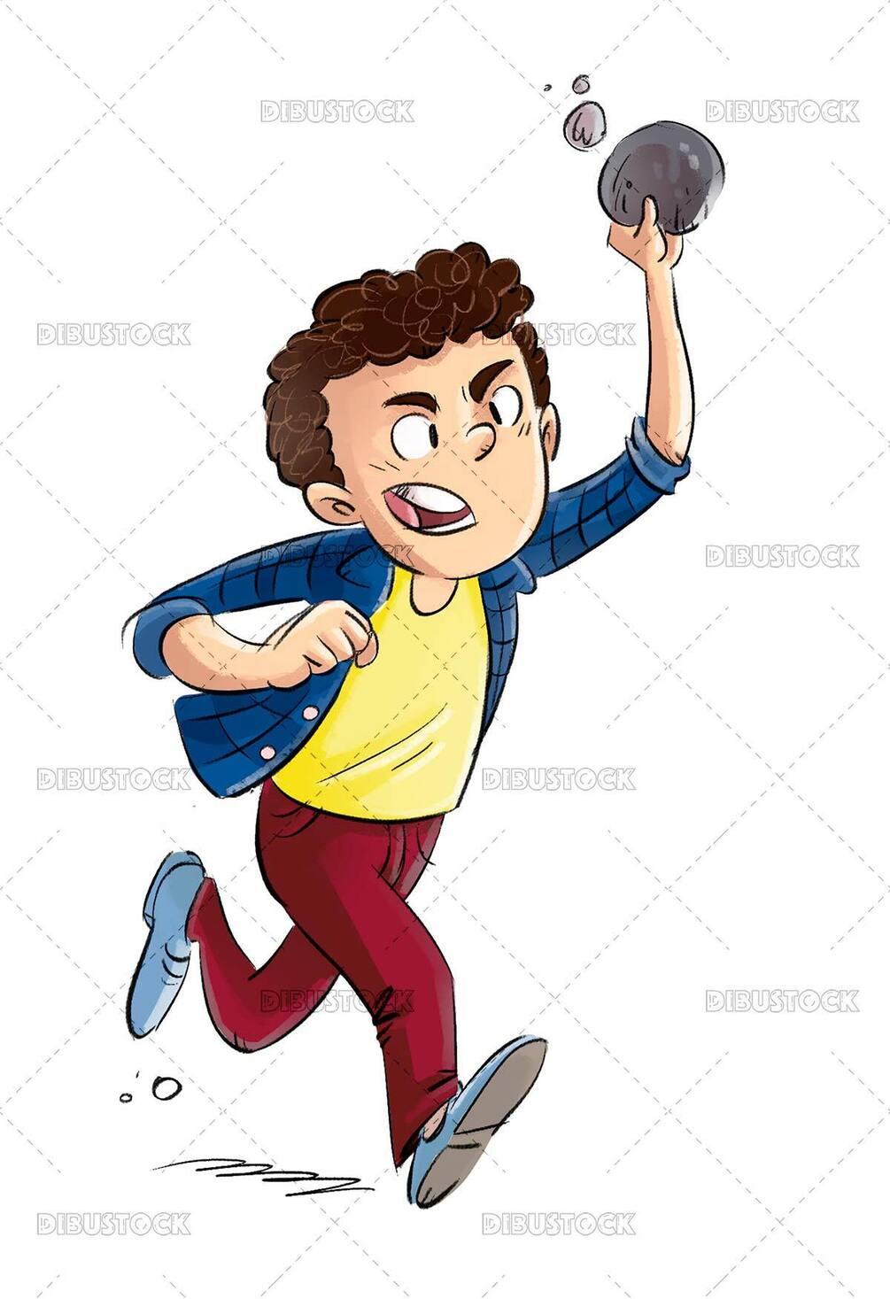 violence; attack; crash; vandalism; angry; child; person; small; break; bad; young; kid; anger; boy; fight; cartoon; people; emotion; illustration; male; conflict; game; danger; shot; rock; shirt; throw; playing; furious; hurt; parent; isolated; scream