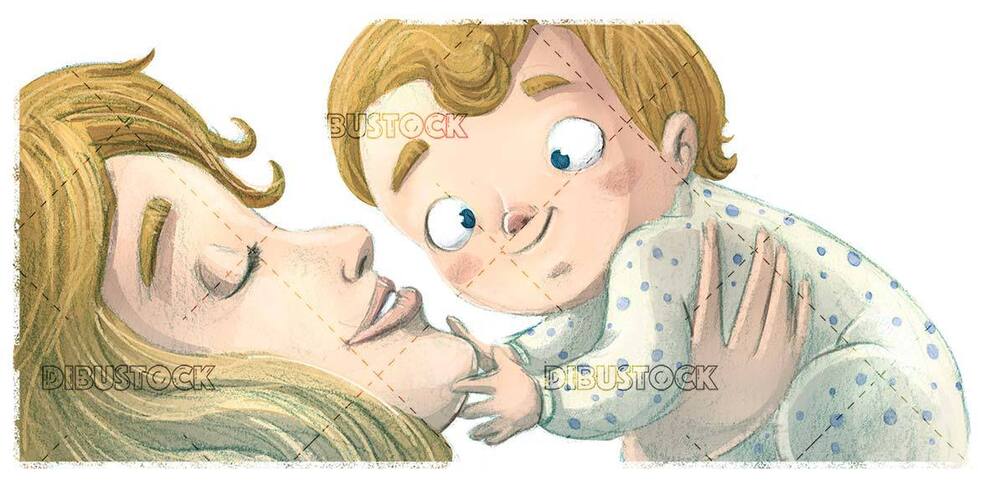 baby, mother, mother's day, maternity, child, pajamas, faces, son, smile, infant illustration, newborn, embrace, cute, tender, happiness, offspring, childhood, infant, life, illustration, cartoon, pink background, rose, hearts, love, celebration, congratulations