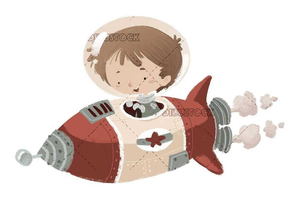boy, rocket, flying, space, austronaut, imagination, spacesuit, costume, fantasy, cuckoo, childhood, infant, children, boy, illustration, drawing, cartoon, isolated, cropped, white background